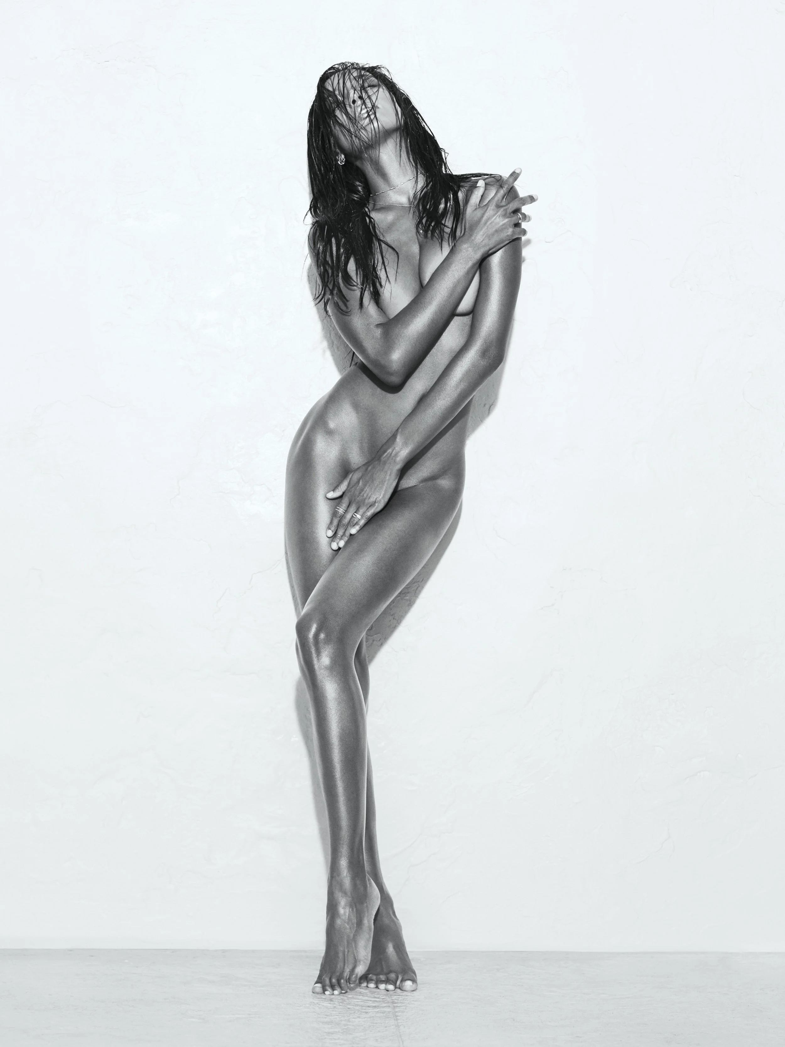 “Jasmine and I were at a home that overlooks Malibu Beach. I had set up a large 20k HMI light, one of the brightest movie lights in the industry. Jasmine has exceptional body confidence and the scene was something of an homage to Herb Ritts and his use of direct light and shape. For me this is the gold standard in form, and Jasmine was the perfect subject.” - RUSSELL JAMES
